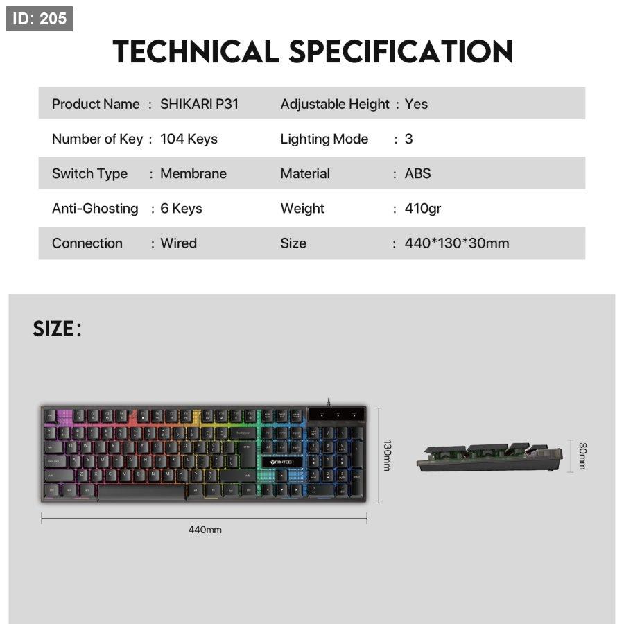 لوحة مفاتيح سلكية K515 Shikari Gaming PC Membrane