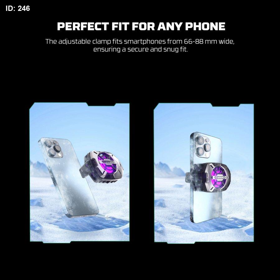 The PC10 features an aluminum cooling plate that effectively dissipates heat, ensuring your device remains cool during intensive use. Its high-speed fan operates between 3000 and 4500 RPM, providing rapid cooling to prevent overheating. The cooler’s magnetic and detachable clamp design allows for easy attachment and removal, accommodating a wide range of smartphone sizes. Additionally, the rainbow RGB lighting adds a vibrant aesthetic, enhancing your gaming or streaming setup