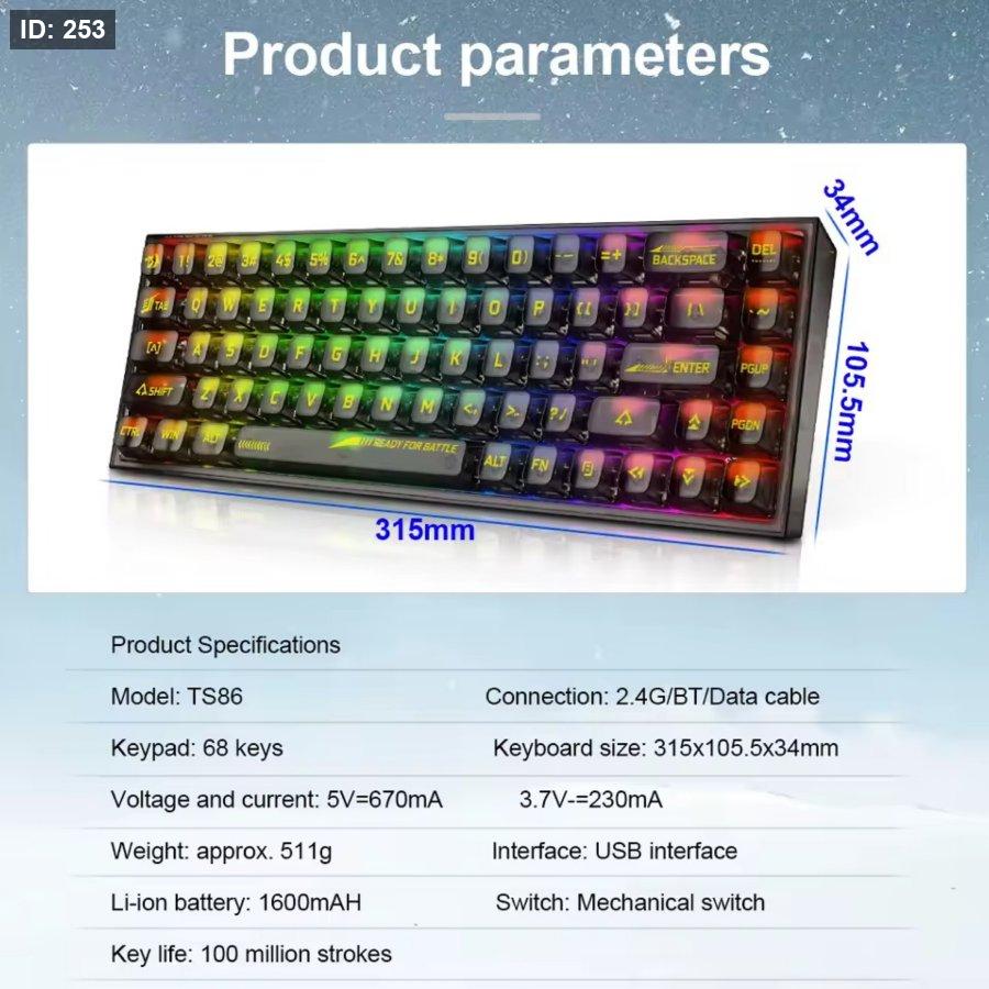 أغطية المفاتيح: بلاستيك PBT مزدوج الطبقة مع غلاف شفاف علوي وسفلي