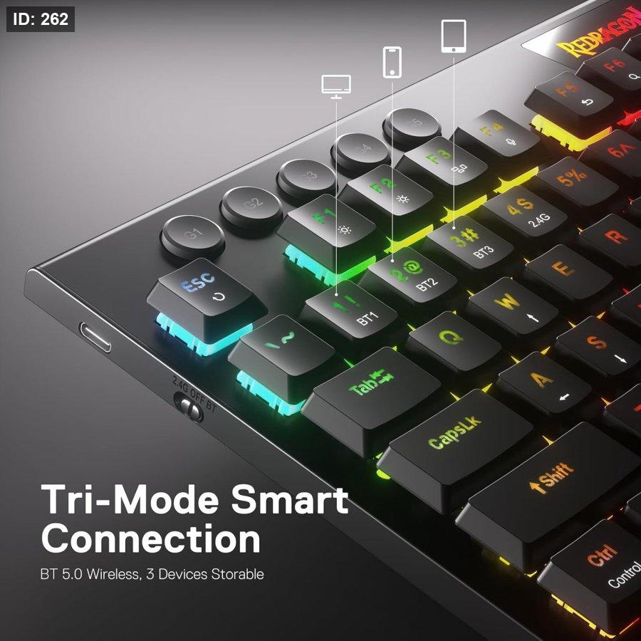 3-Mode Connection: Here comes Redragon innovative 1st-Gen 3-mode connection technology, USB-C wired, BT 3.0/5.0 & 2.4Ghz wireless modes which advanced your use experience to next level in all fields.