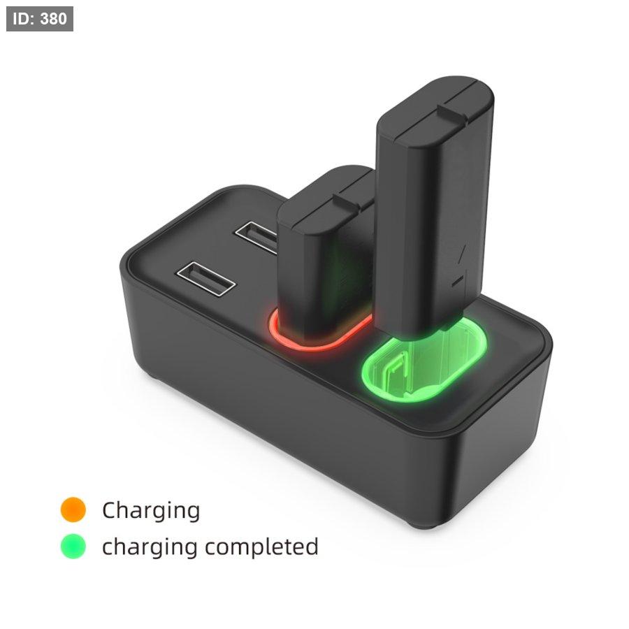 تحتوي القاعدة على ضوء ليد يبقى برتقالي خلال عملية الشحن ويتحول للون الاخضر عند انتهاء عملية الشحن للبطارية