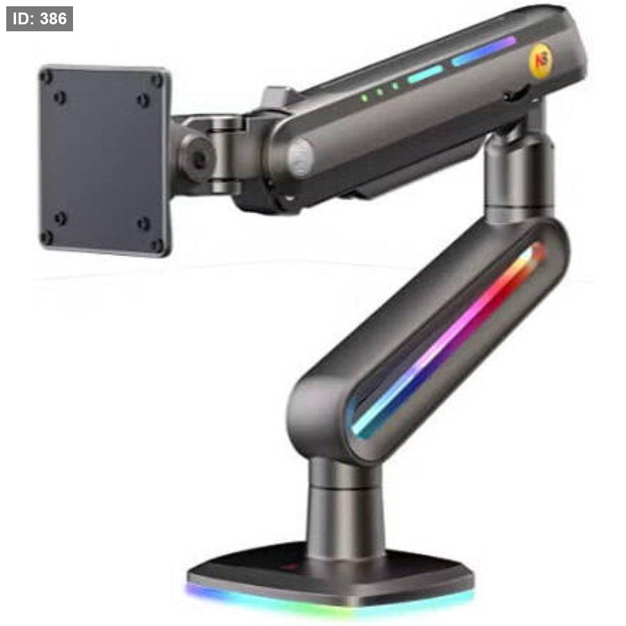 Adjustable - The gaming monitor arm support flexible adjustment of angles, upright 260 mm, rotation 360 degree, tilt angles -50 to +50 degree, swivel angles -90 to +90 degree, Max arm extension up to 24.4”(620)