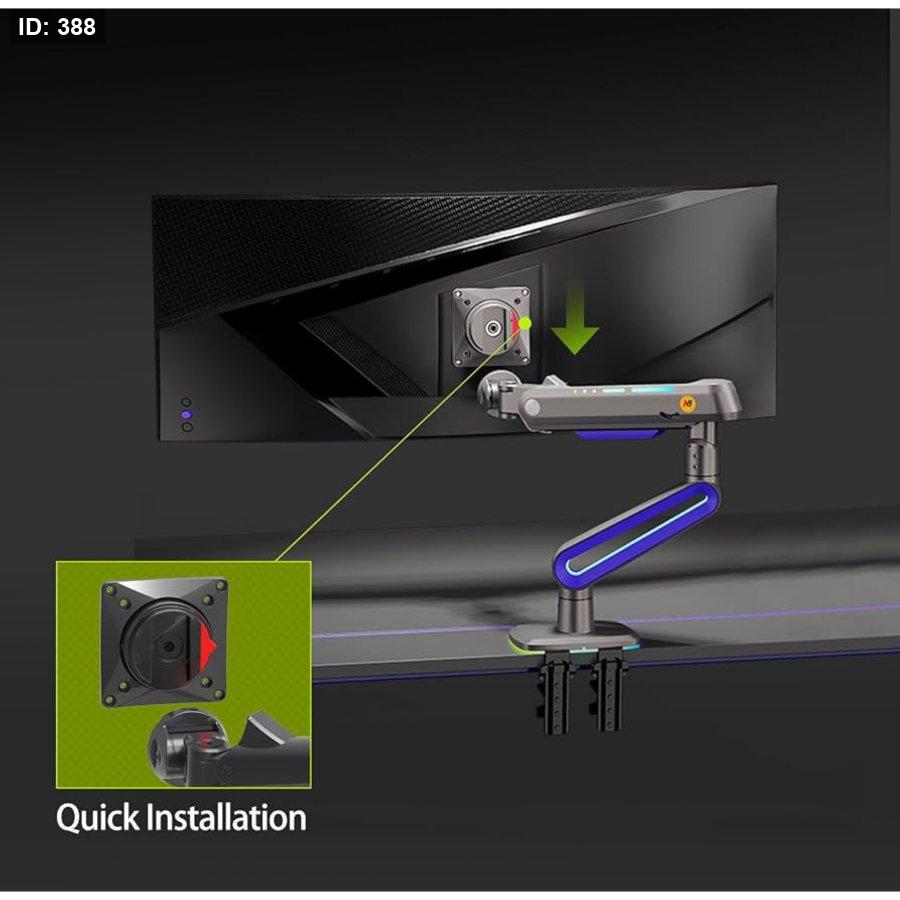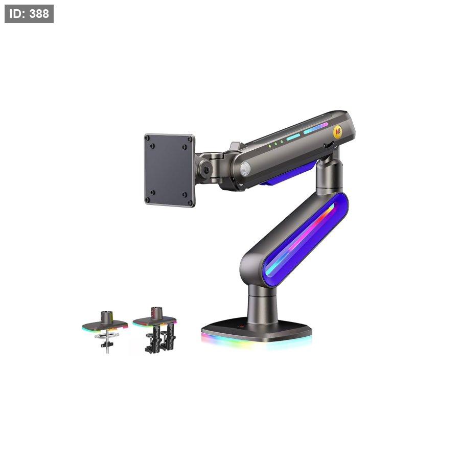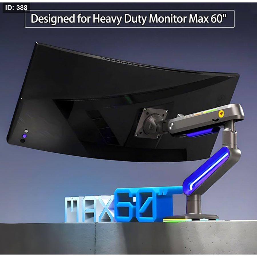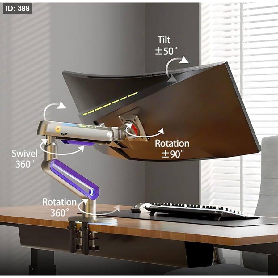 Adjustable - The gaming monitor arm support flexible adjustment of angles, upright 260 mm, rotation 360 degree, tilt angles -50 to +50 degree, swivel angles -90 to +90 degree, Max arm extension up to 24.4”(620)