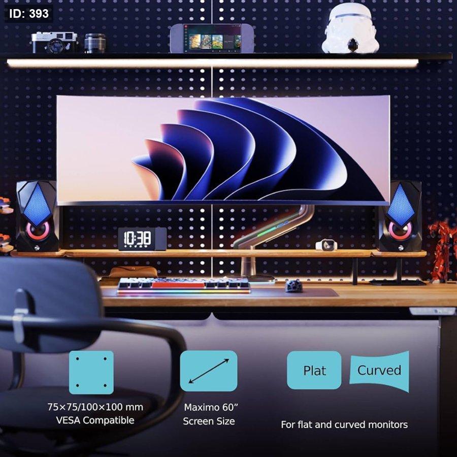 1.【Monitor Compatibility】Most Curved / Ultra-wide / Flat monitor with 32 to 60 inches in size and 2 to 20 kg in weight; 75x75mm or 100x100mm VESA patterns. 2 Way Installation: Double C Clamp or Grommet Hole.