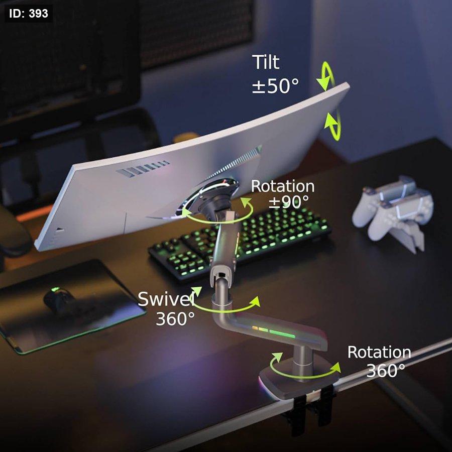4.【Ergonomics Comfort】Reduce discomfort from long time gaming or work through new ERGONOMIC design; Freely adjust with 360° rotation, -50° to +50° tilt, -90° to +90° swivel, and up to 25 inches long arm extension.