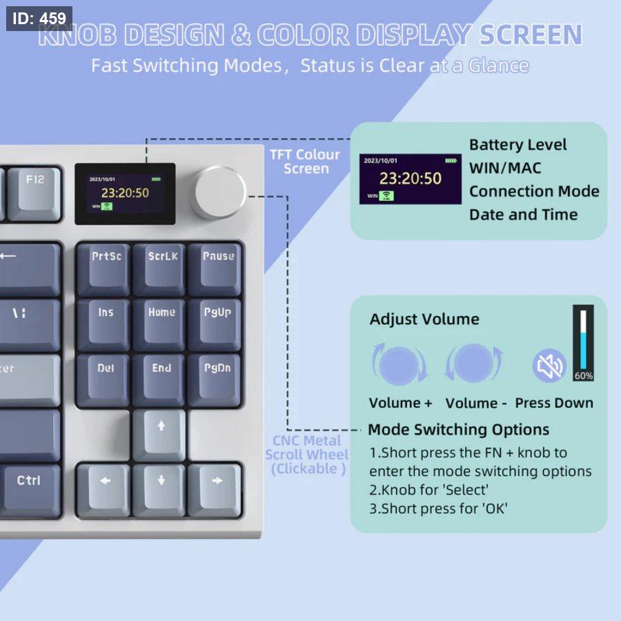 Display & Knob: 1.2″ TFT color screen shows battery, mode, GIFs, time, etc.; CNC knob for volume, lighting, device switching