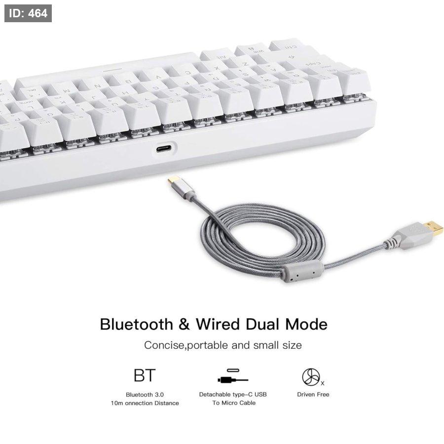 Dual mode, support USB wired/BT connection, the Type-C charging interface can charge the keyboard in wired mode. Adopt high-performance BT3.0 chip to ensure more stable signal transmission, 10m effective transmission distance, strong anti-interference ability.