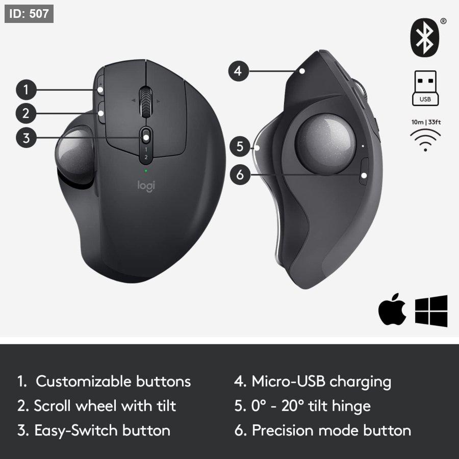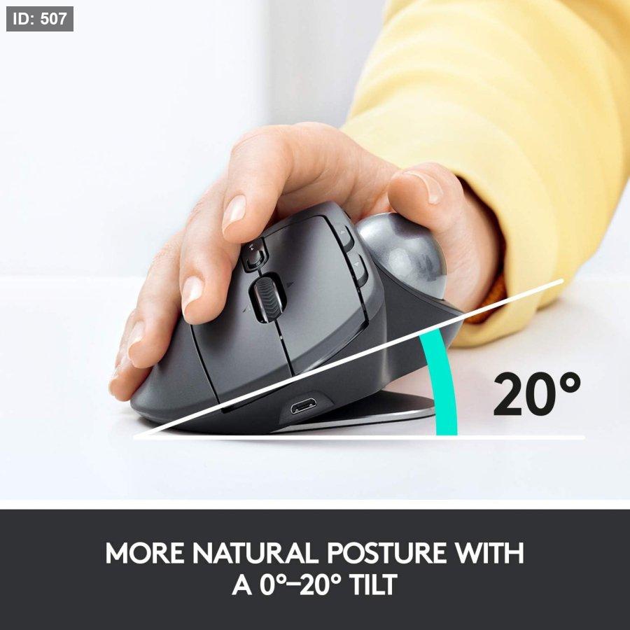 ERGONOMIC DESIGN FOR MORE COMFORT: Customize the trackball angle from 0–20° for a more natural, comfortable hand position. 20% less muscle fatigue*. * Than a regular mouse.